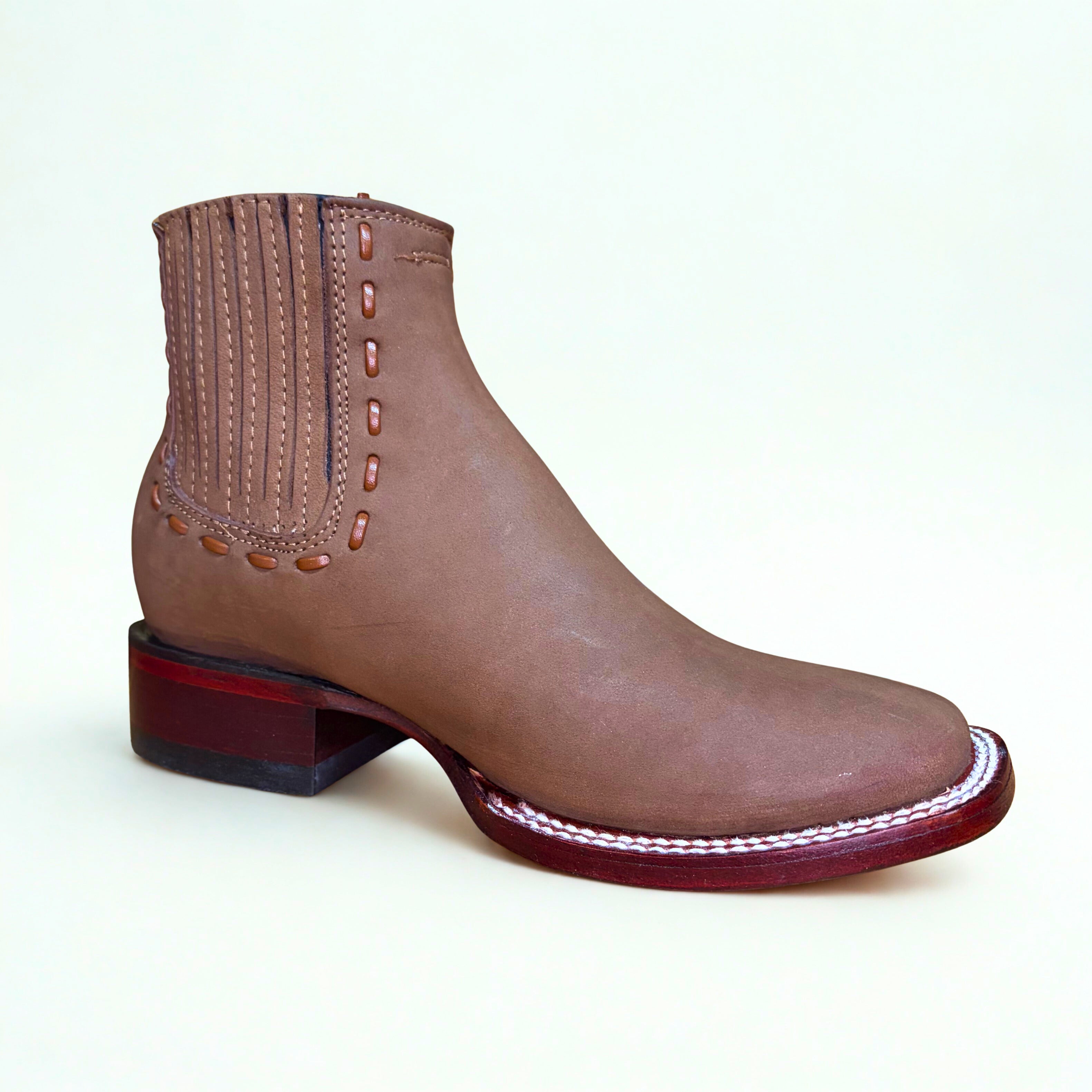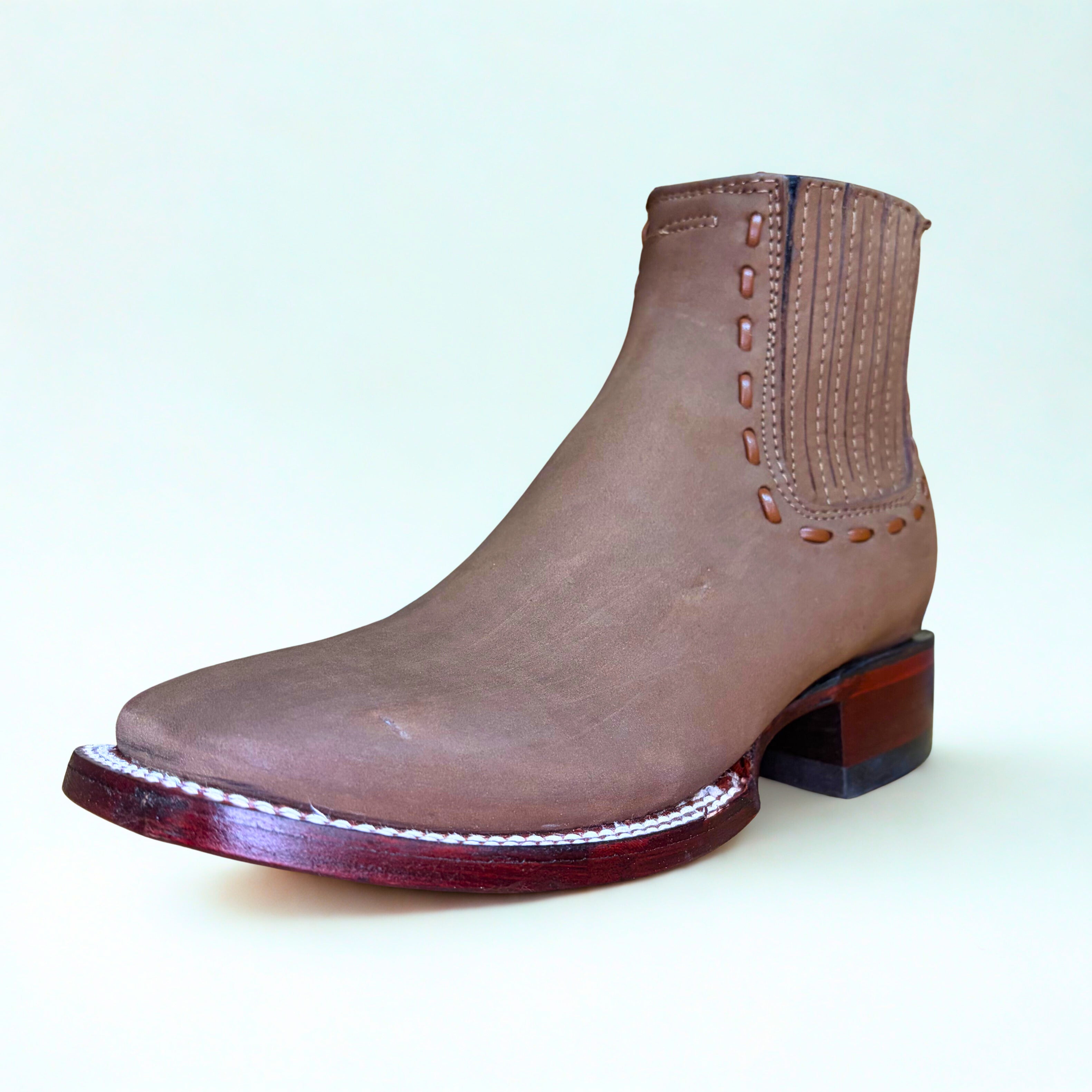 Nubuck Taupe Wide Square Toe Ankle Boot